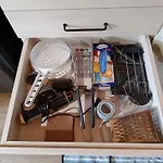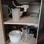 この浴室1室のヴィラの台所で自身の食事を作ることもできます。